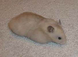 | One of the interesting things I noticed with the yellow blacks with good tipping is the process by which the tipping appears on the hamster. The niece of the above Yellow Black female is going through this process right now. I believe she is a Light Gray Pearl Black (not a standardized color but genetically aaLglgToTo). Her father is a Light Gray Pearl (AaLglgToY) while her mother is a Black Tortoiseshell (aaToto). The tipping starts at about six weeks of age with a "moustache." It progresses to the "5 o'clock shadow," and I expect it to continue progressing up the face and across the back. I will document the process as it occurs on this youngster. |